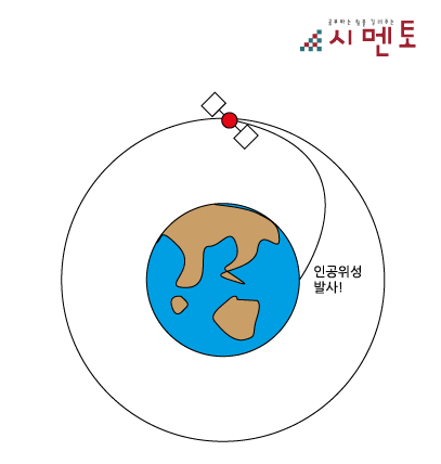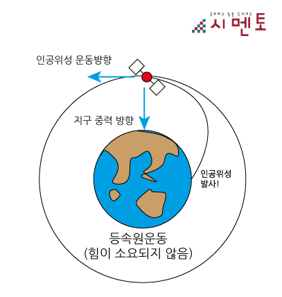 인공위성은 등속원운동(지구를 같은 속력으로 원모양으로 도는 운동)을 하게 됩니다.