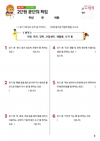 서로 다른 학습지가 한 장의 A4 용지에 함께 인쇄됩니다.